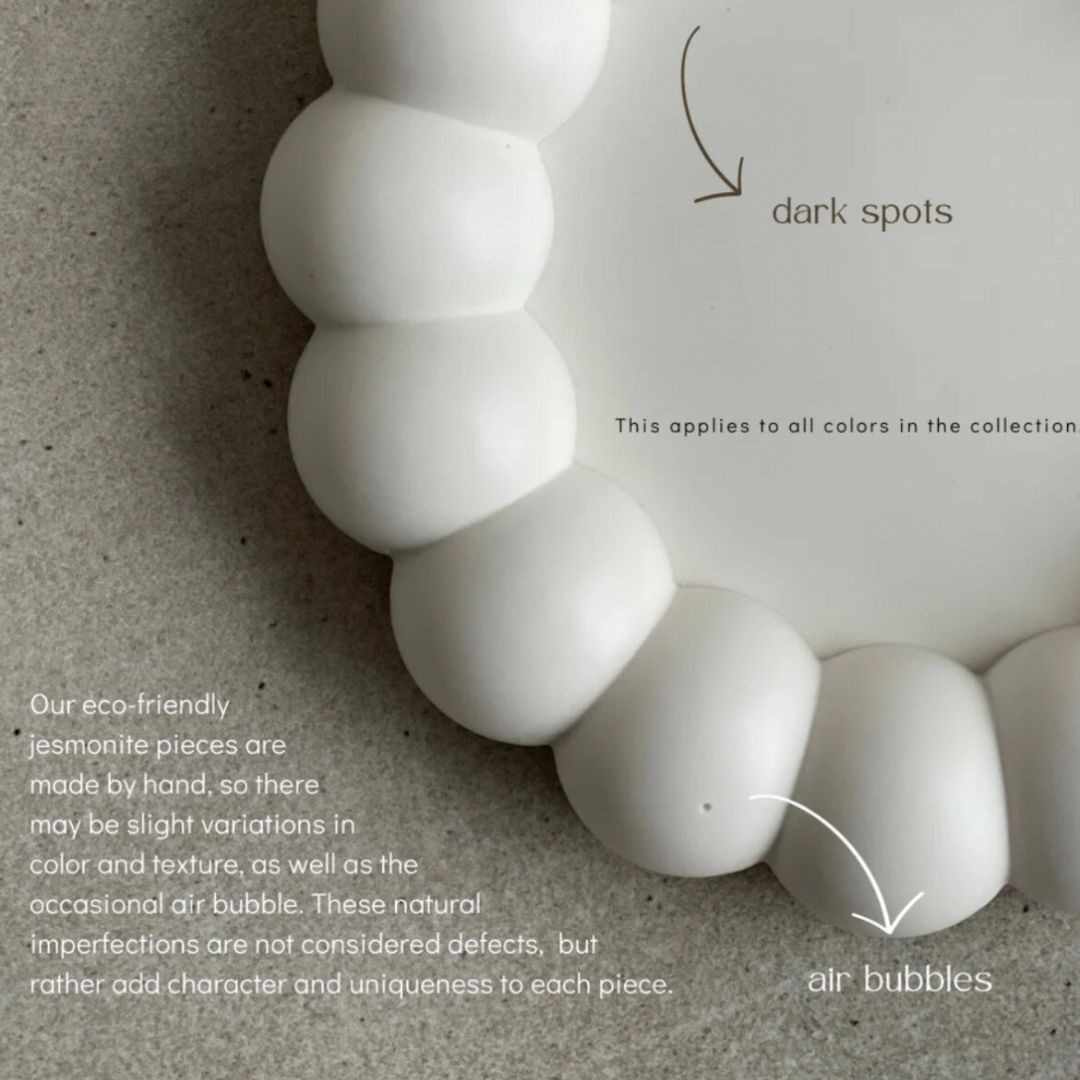 Experience elegance with the Peony Tray, a charming addition to your decor. This petite tray features a round center perfect for holding small items, while its unique bubble-studded sides add a playful touch.
